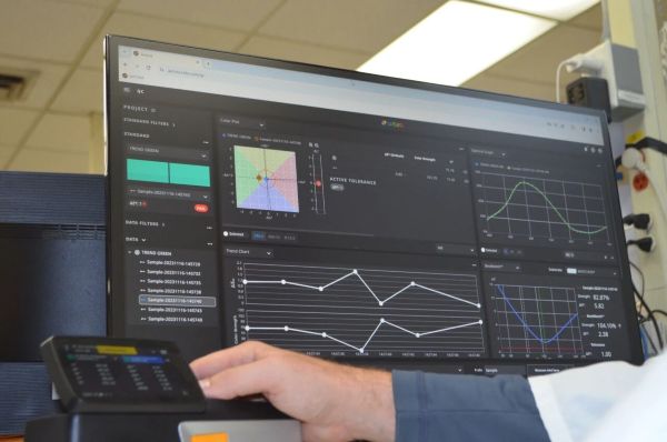 為快速配制精準油墨色彩、減少浪費并降低庫存,油墨配色師需采用包含數字色彩標準、分光光度儀及配方與質量控制軟件的計算機輔助解決方案。物理標準雖有助于視覺配色,但數字標準可提供精確的光譜數據,從而在配方軟件中生成準確的配方。憑借Wi-Fi連接與非接觸式操作,eXact 2 Plus可對色塊和基材進行無污染測量,并將色彩數據發送至油墨配色軟件。該軟件可利用這些測量數據或PantoneLIVE的數字標準來制定配方,結合基材特性實現更佳的光譜色匹配效果并減少打樣次數。完成刮樣后,eXact 2 Plus再次測量并將數據反饋至ColorCert質量控制軟件,以在批量混合前驗證打樣色差是否在容差范圍內。油墨配色軟件還可存儲配方以便快速重調,并將剩余油墨用于后續配方,從而實現更加可持續的生產流程。